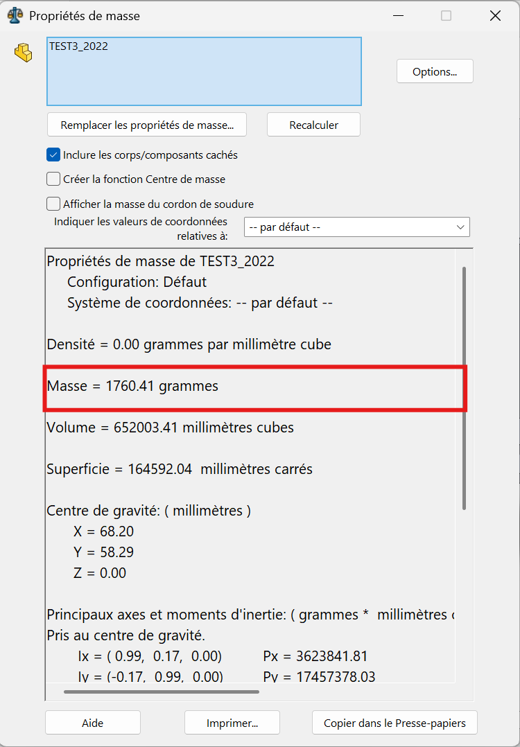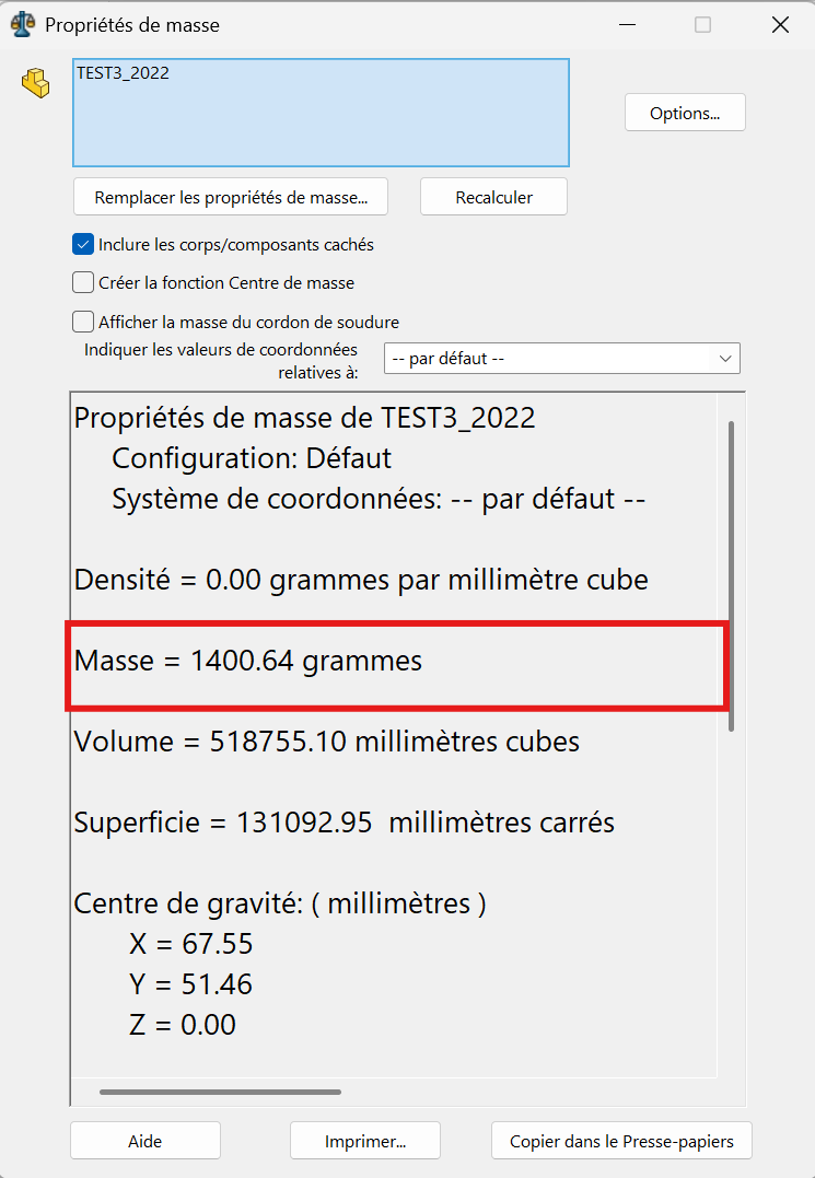 The advanced level Test 3 consists of modeling a complex part that will be validated by achieving the appropriate mass.