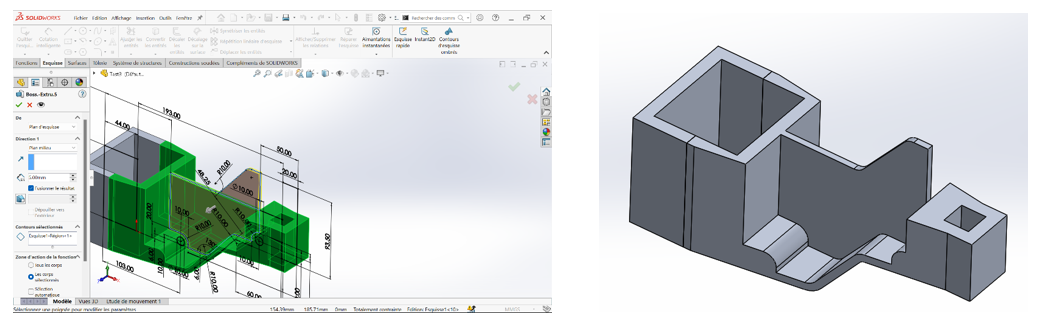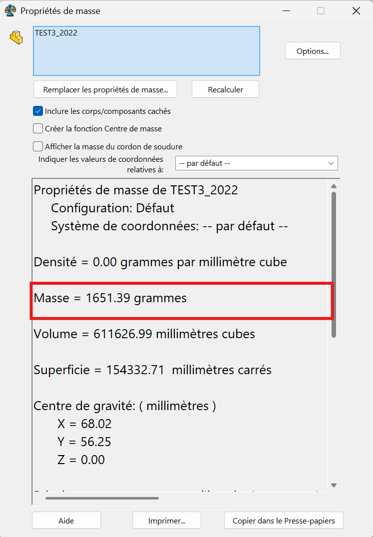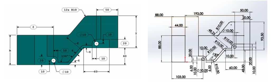 For this test, dimensions A, B, Z, Y, X, W must be modified to obtain a new part with a different mass each time. To achieve this: