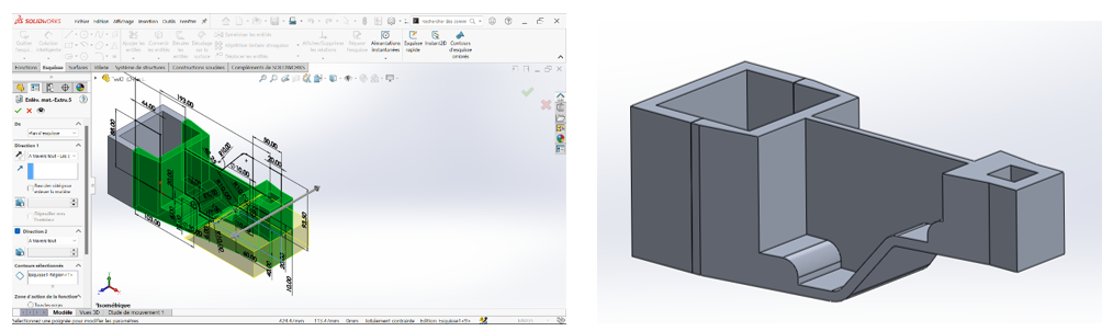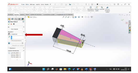On the front plane, make the following sketch and proceed to remove extruded material to obtain the part.