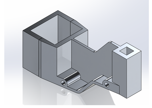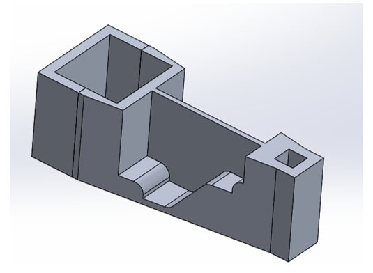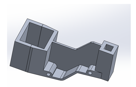 By making an extruded boss from the sketch on the top plane and extruded cuts for the 10 mm holes, we obtain the penultimate part.