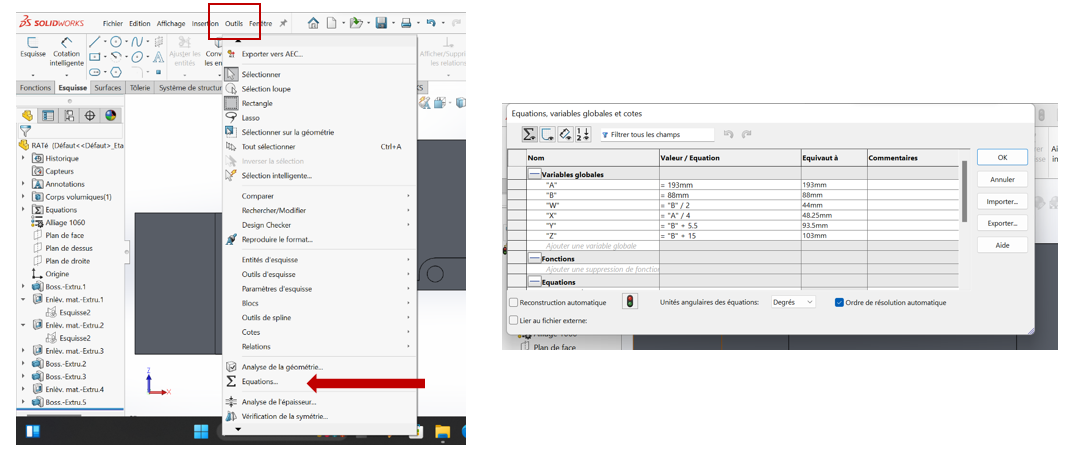 Note: This document references multiple technical drawings and sketches that guide the 3D modeling process. The parametric approach using global variables allows for efficient generation of multiple part variants.