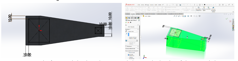 On the front plane, draw the following view while respecting the dimensions and angles.